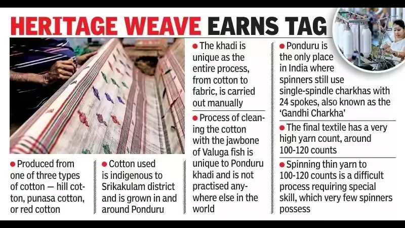 आंध्र प्रदेश के कपड़े, पोंडुरु खादी को भौगोलिक संकेत रजिस्ट्री (Geographical Indications Registry) द्वारा भौगोलिक संकेत (GI) टैग प्रदान किया गया है ।