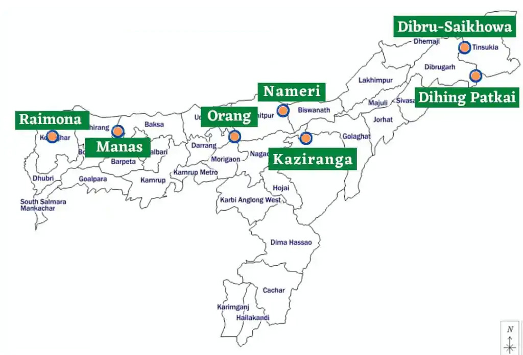 - परिचय: वर्ष 1908 में स्थापित यह उद्यान असम के गोलाघाट और नागाँव ज़िलों में स्थित है। इसे वर्ष 1974 में राष्ट्रीय उद्यान, 1985 में यूनेस्को विश्व धरोहर स्थल और वर्ष 2006 में बाघ अभयारण्य (टाइगर रिज़र्व) के रूप में घोषित किया गया।