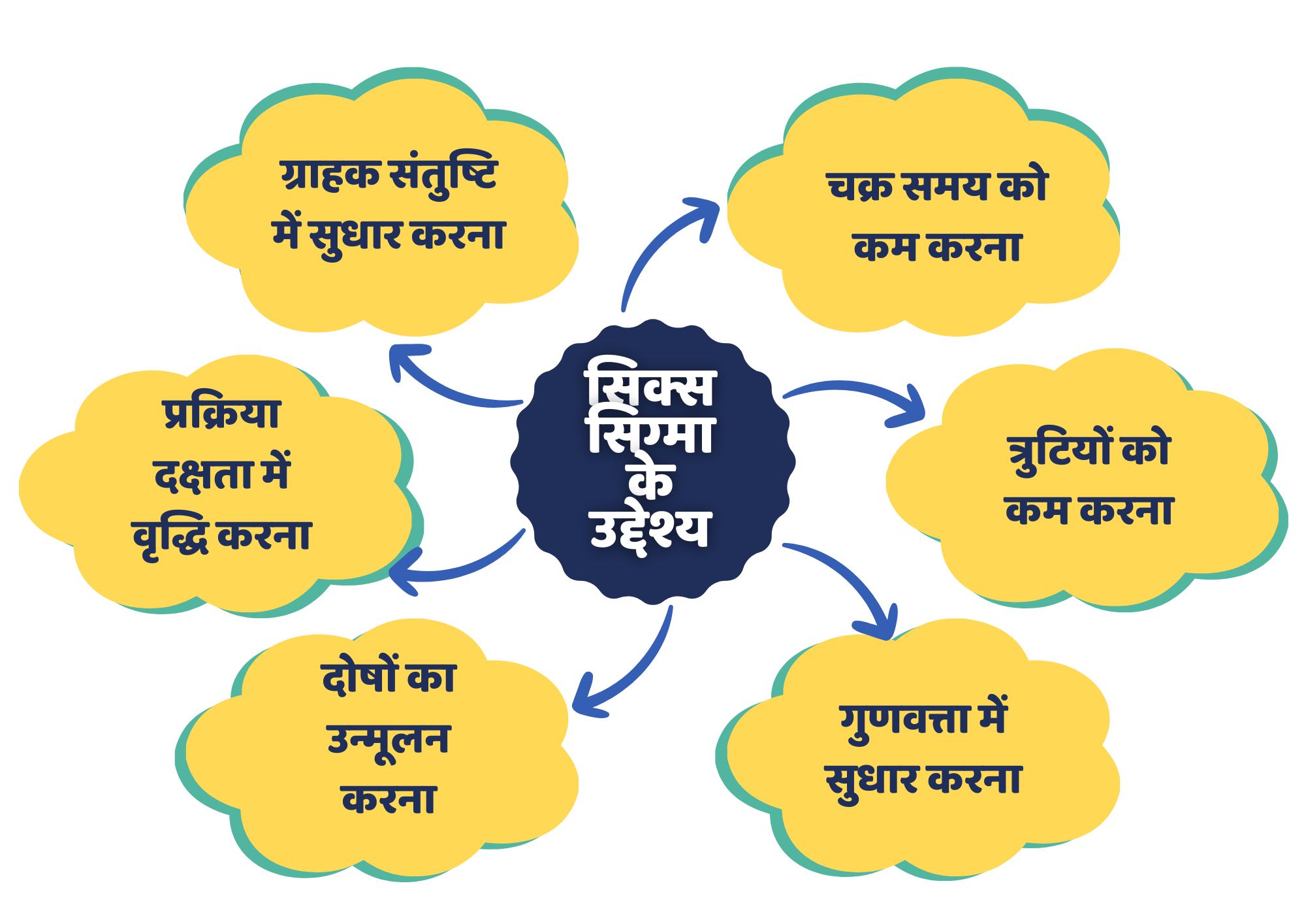 - लक्ष्य: यह एक डेटा-आधारित पद्धति है, जिसका उद्देश्य लगभग पूर्णता प्राप्त करना है, विशेष रूप से दोषों को प्रति दस लाख अवसरों में अधिकतम 3.4 (DPMO) तक सीमित करना।