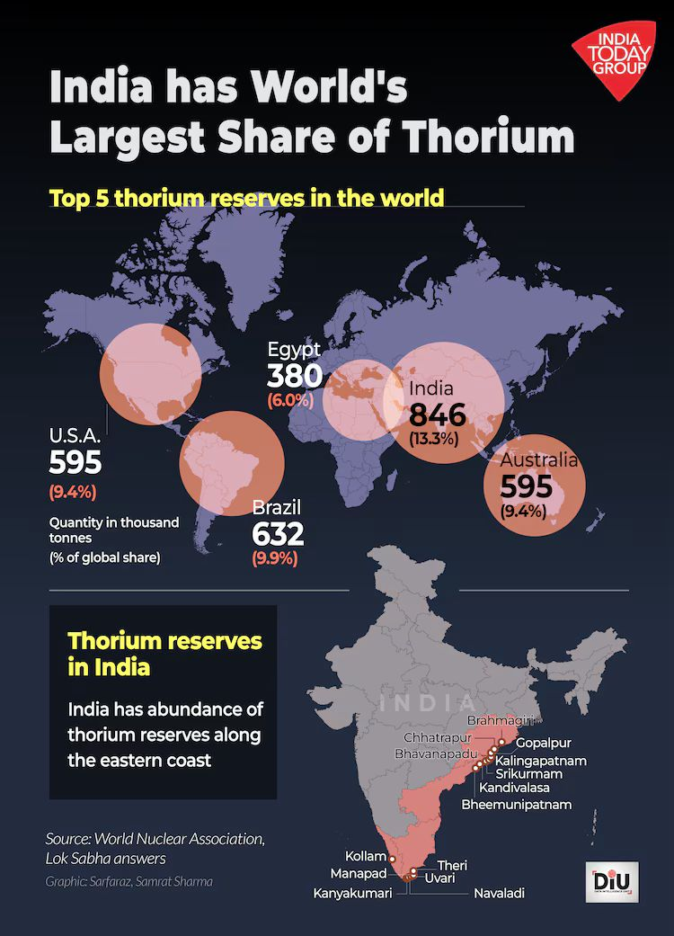 भारत के पास विश्व के थोरियम भंडार का लगभग 25% हिस्सा है, जिसे यूरेनियम-233 में परिवर्तित किया जा सकता है, जो परमाणु ऊर्जा उत्पन्न करने के लिये एक विखंडनीय ईंधन है।