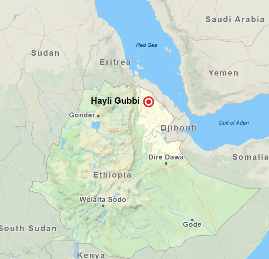 इथियोपिया में स्थित हायली गुब्बी ज्वालामुखी में भयंकर विस्फोट हुआ है, जिसके परिणामस्वरूप हजारों मीटर ऊँचाई तक राख के विशाल गुबार उठे। इन राख कणों का एक भाग भारतीय वायुक्षेत्र में प्रवेश कर गया है, जिसके कारण विमानन-संबंधी चेतावनी जारी की गई है।