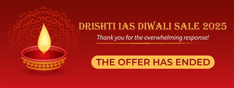 This festive season, as India prepares for Diwali, Drishti IAS is illuminating the path to your dream career. We are thrilled to announce our most awaited sale of the year—the Diwali Sale 2025! Commit to your goals for the upcoming exam cycle with unprecedented savings of up to 50% OFF on our entire range of Online courses, test series, and publications. There has never been a better time to invest in your future.