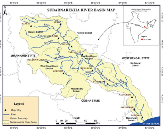 - It spreads across Jharkhand, Odisha, and West Bengal, bounded by the Chota Nagpur Plateau (north & west), Baitarani basin (south), Bay of Bengal (south-east), and Kasai Valley (east).