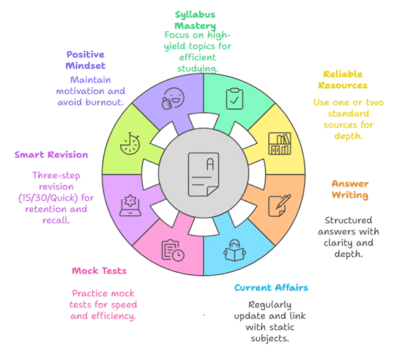 - Develop the habit of writing 3-5 answers daily to improve clarity and structured presentation. Use keywords, avoid unnecessary details, and strictly adhere to the word limit to maximize scoring potential.